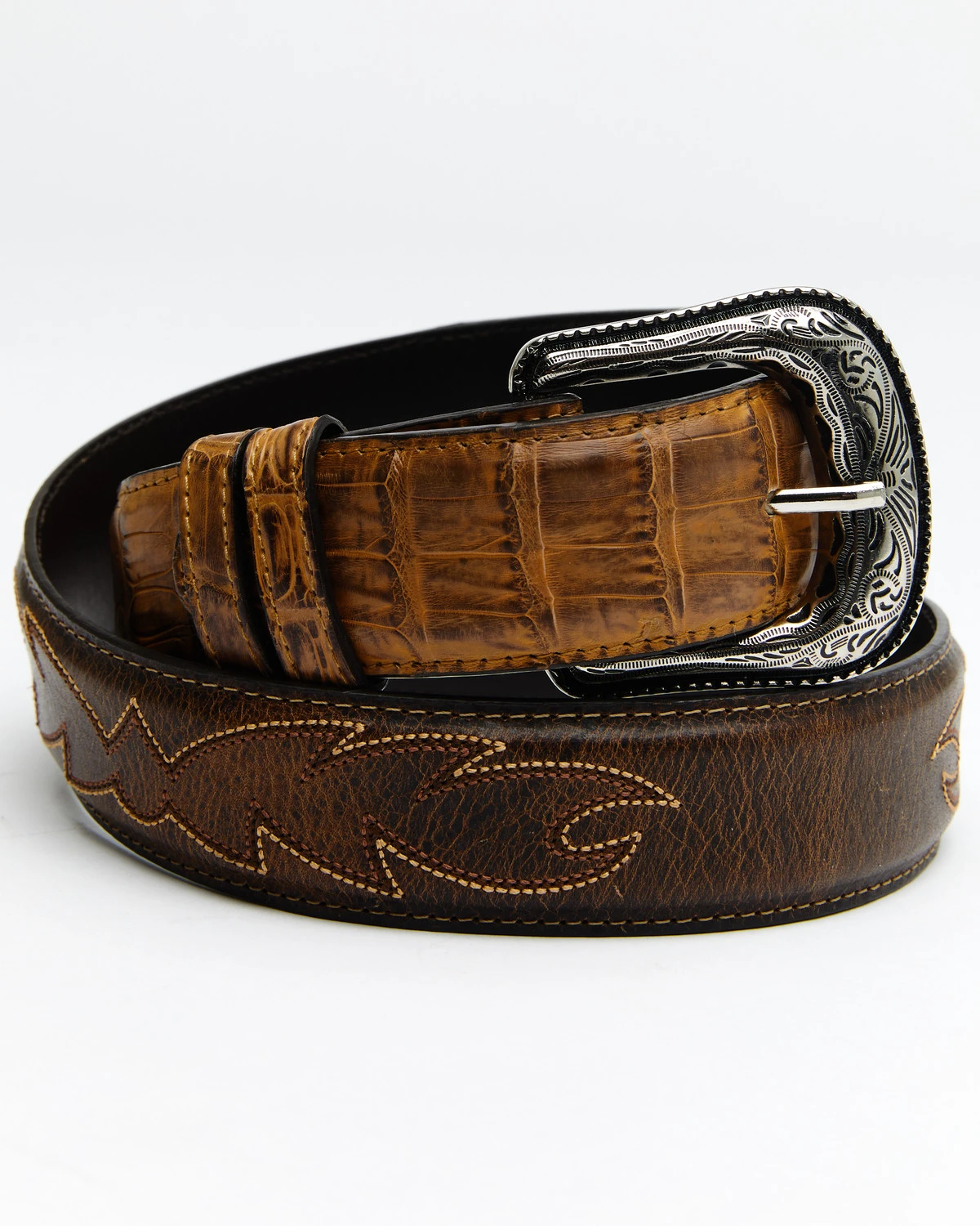 - Filigree engraved buckle and tip