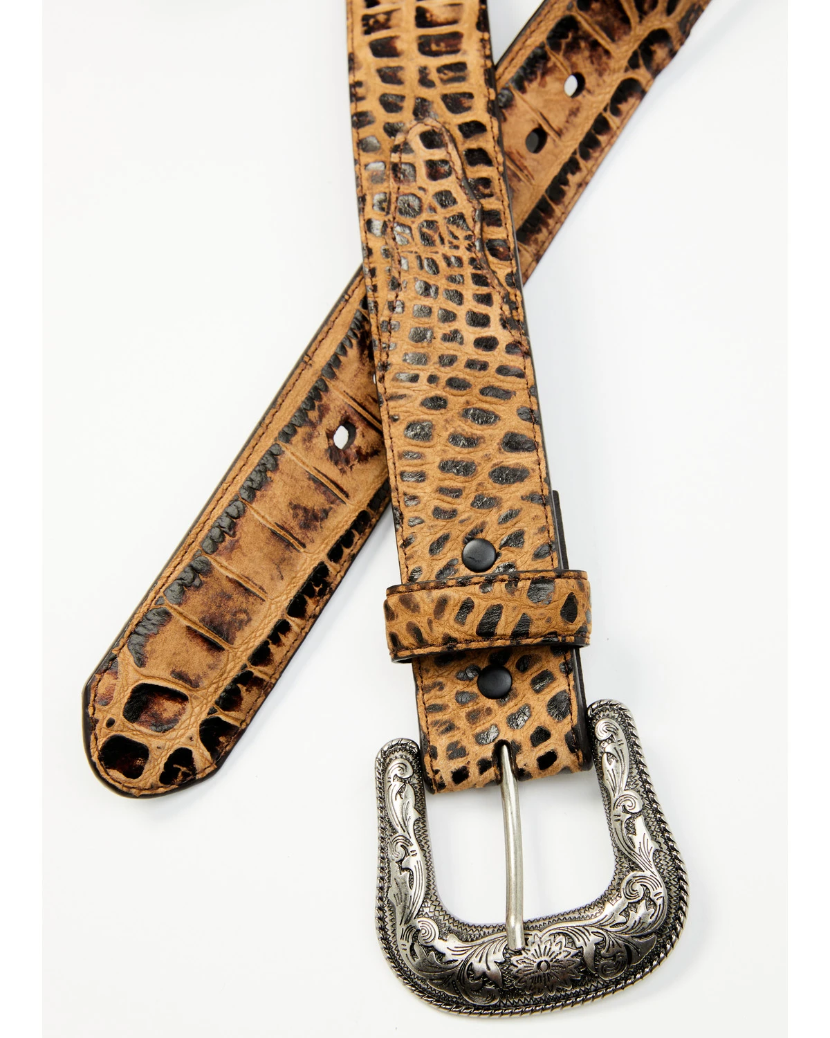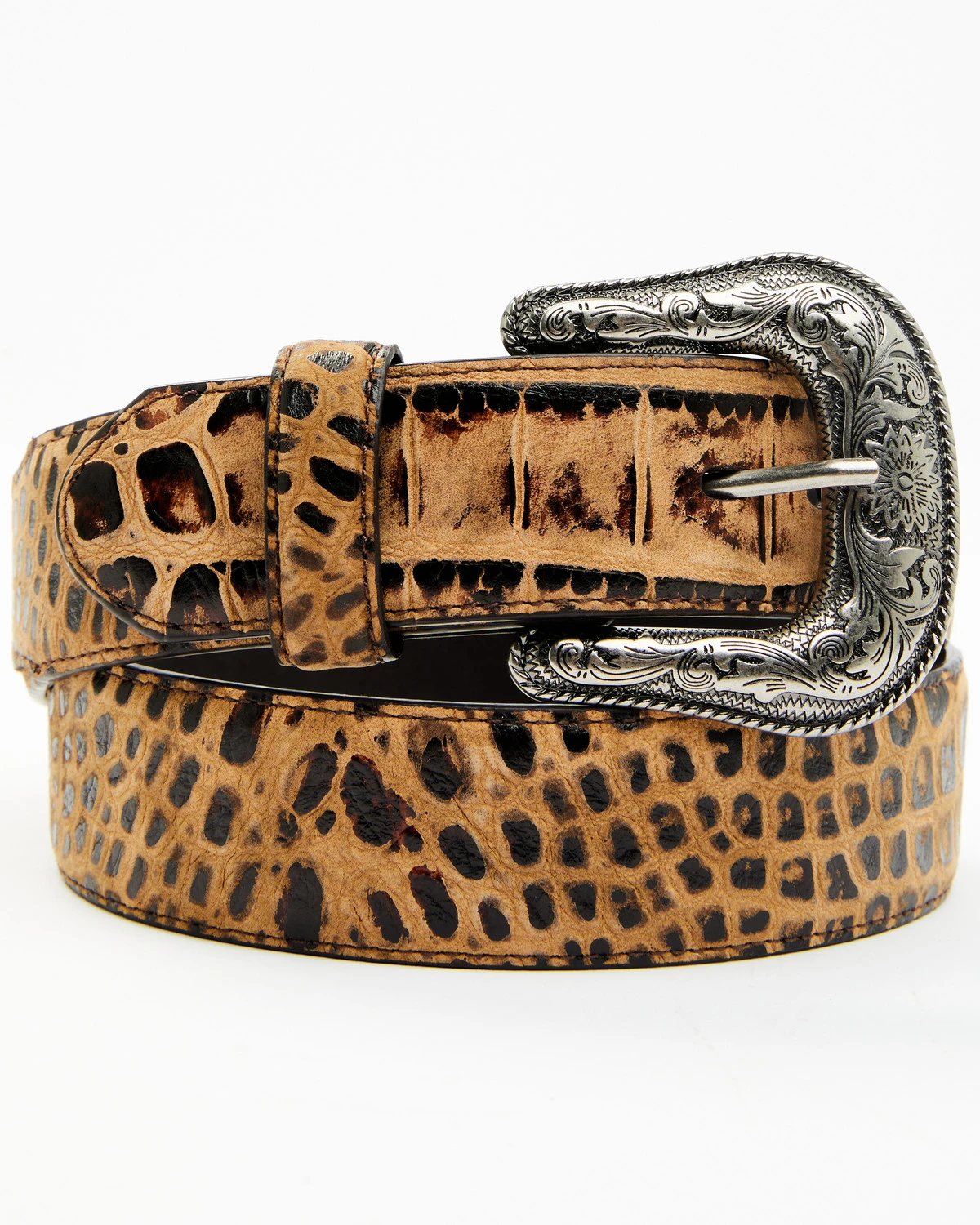 - Floral embossed buckle with roped edge