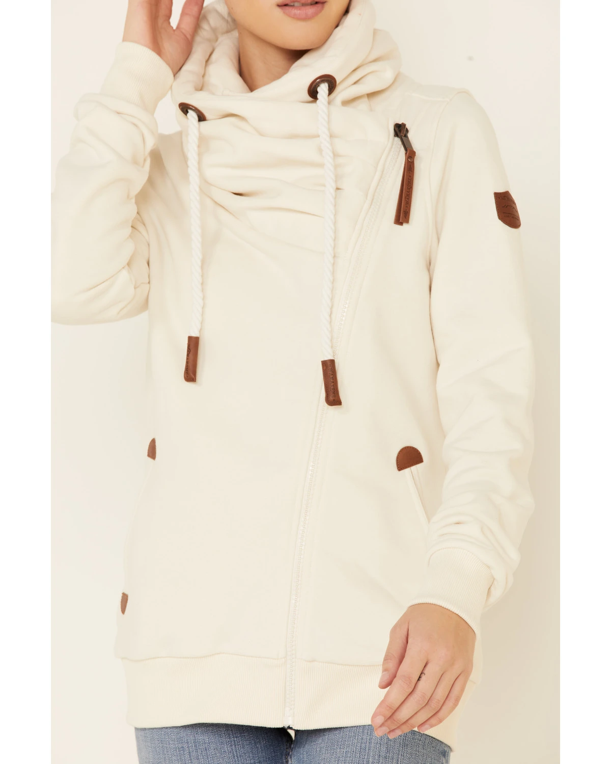 - Asymmetrical zip front closure